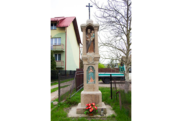 Kamienny słup-kapliczka zwieńczony figurą Matki Boskiej z Dzieciątkiem