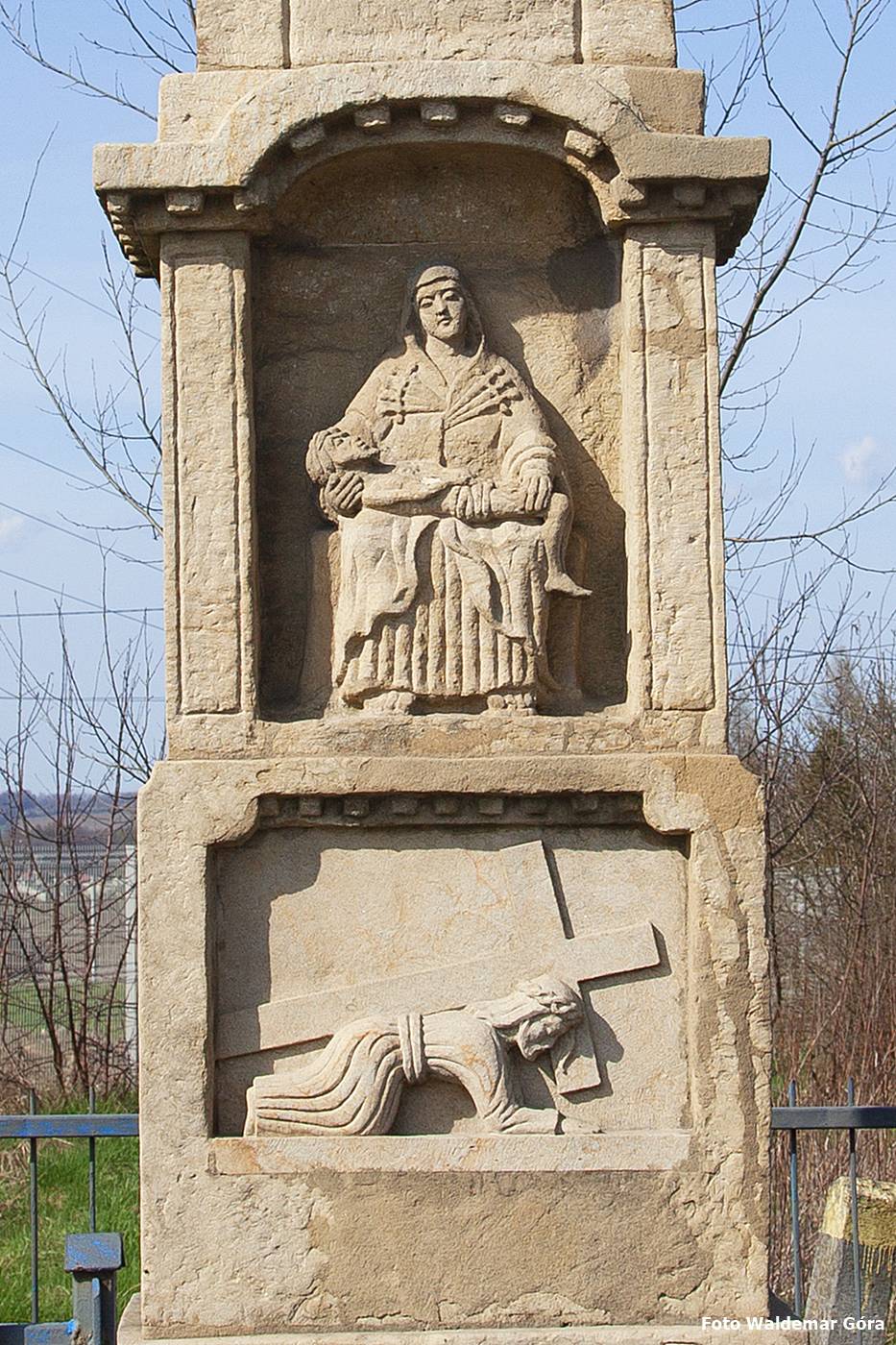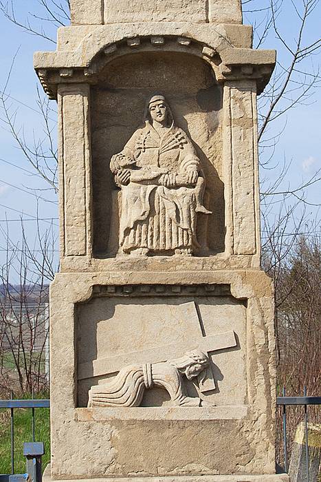 Kamienny słup-kapliczka zwieńczony krzyżem