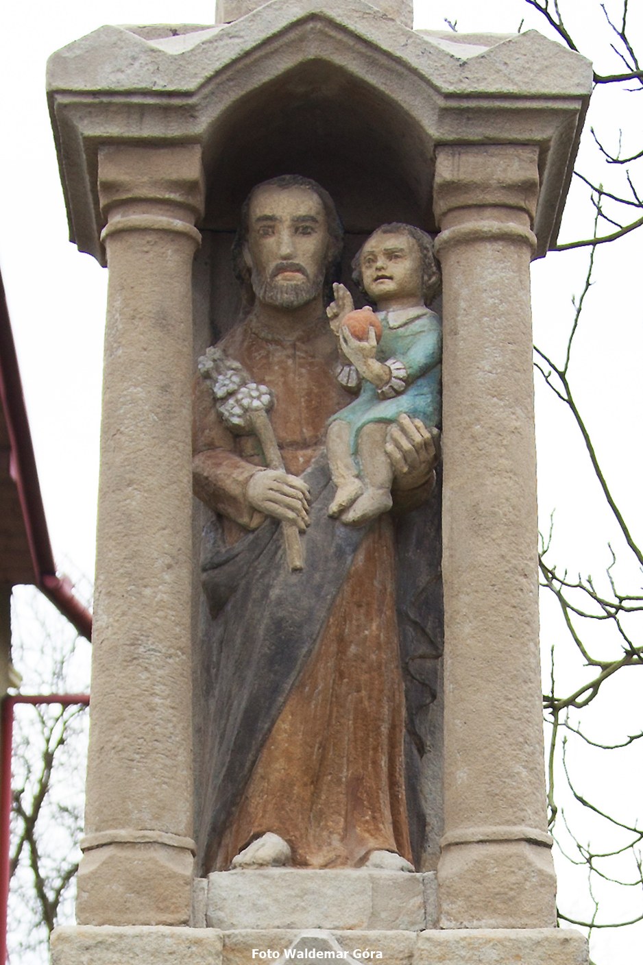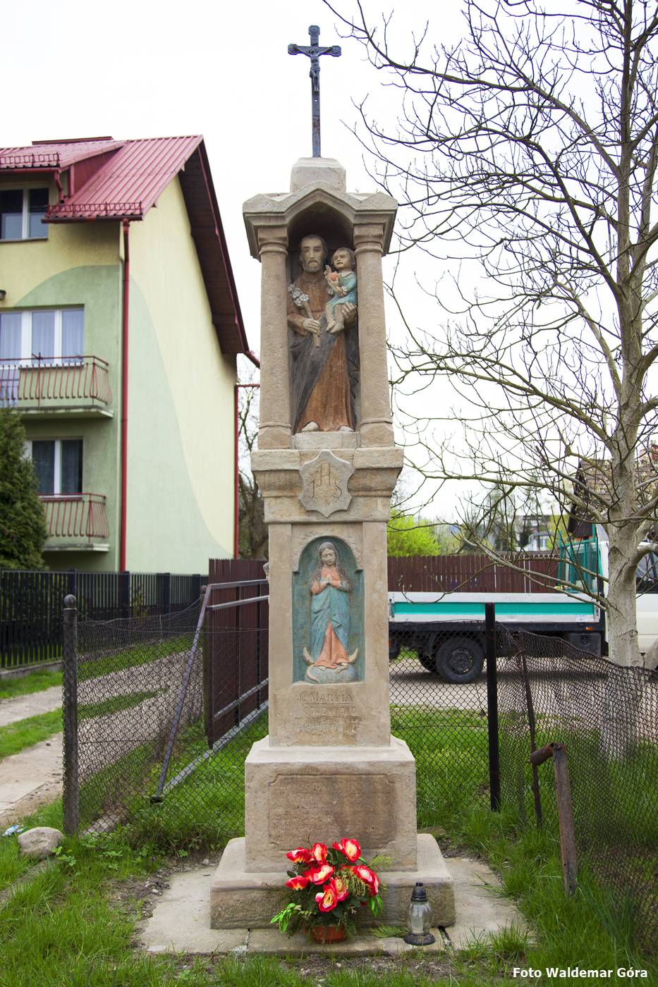 Kamienny słup-kapliczka zwieńczony krzyżem