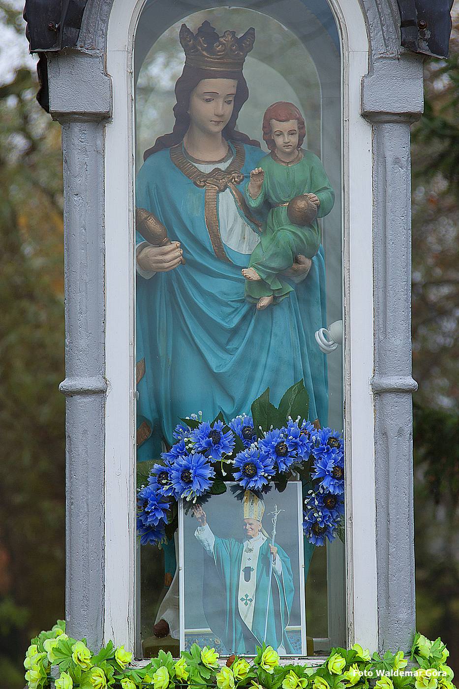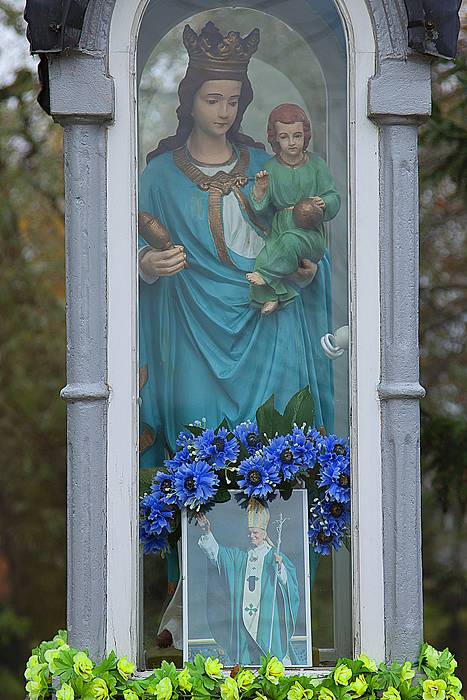 Kapliczka słupowa z figurą Matki Boskiej z Dzieciątkiem