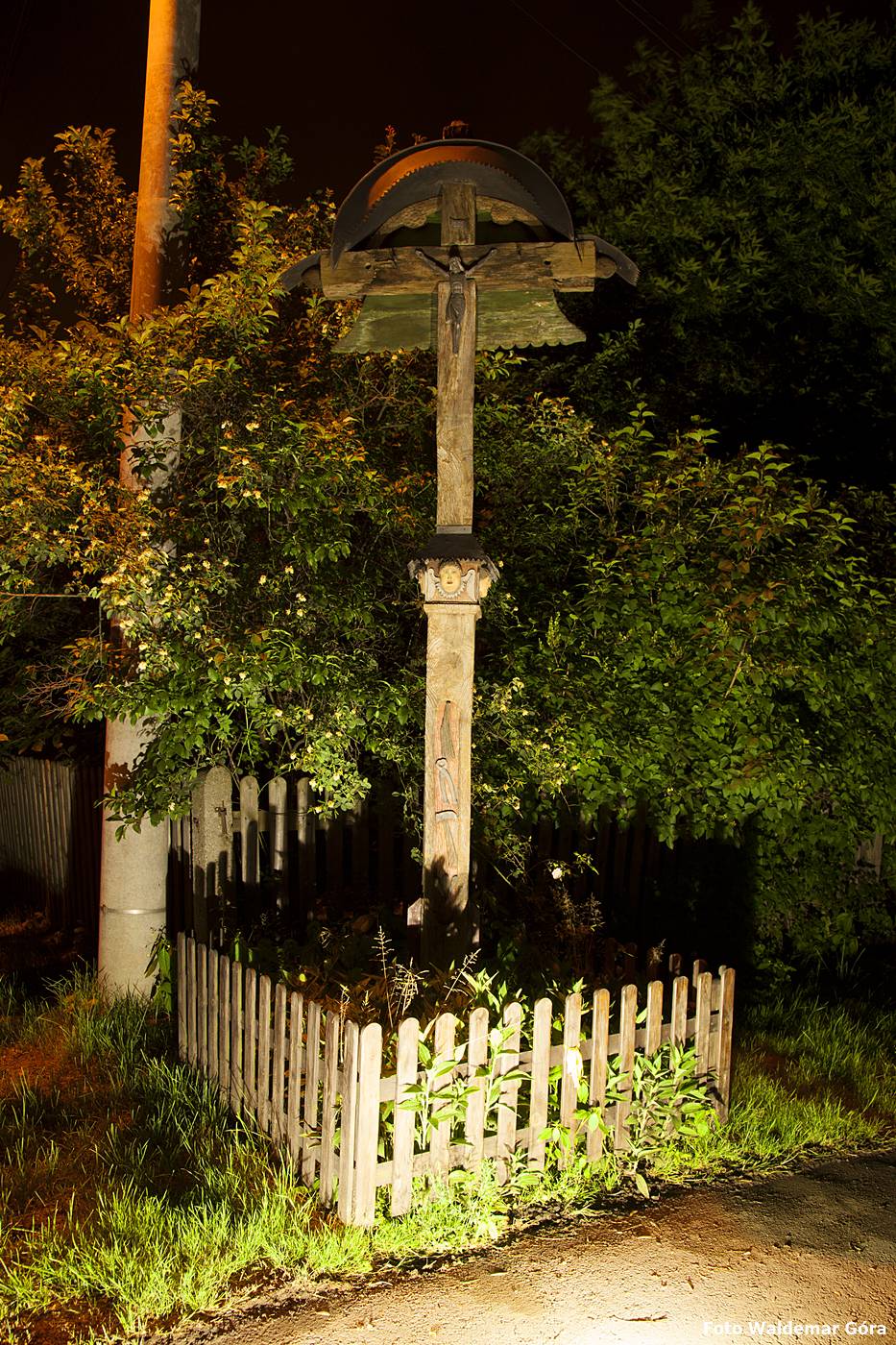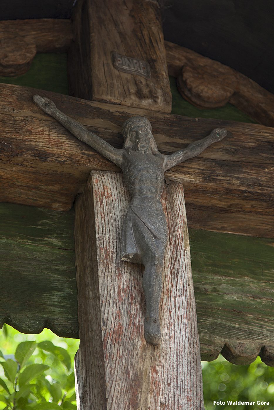 Krzyż z daszkiem z symbolami Męki Pańskiej