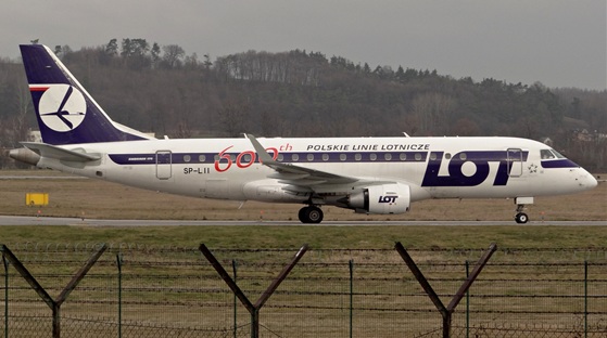 2014.01.11POCHMURNY FOXTROTDzisiaj na pochmurnym Foxtrocie załapaliśmy Embraera 170-200LR linii LOT Polish Airlines w specjalnym malowaniu. |