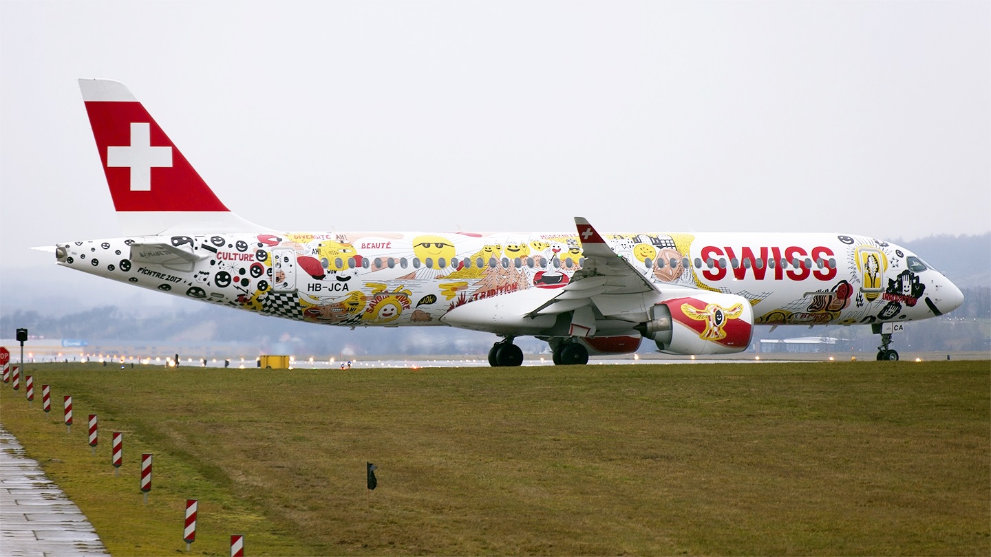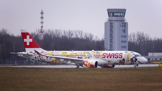 2018.01.30SWISS ROMANDY - FICHTRE W KRAKÓW AIRPORT29 stycznia 2018 r. pierwszy raz odwiedził Kraków Airport Bombardier CS300 BD-500-1A11 szwajcarskiej linii lotniczej Swiss Global Air Lines w specjalnym malowaniu "Swiss Romandy - Fichtre". |