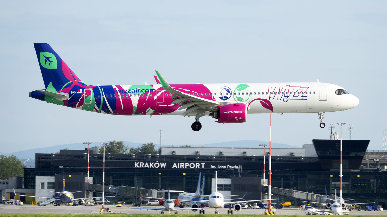 2024.08.06WIZZ AIR "FLY THE GREENEST" W KRAKÓW AIRPORT1 sierpnia w Kraków Airport udało się nam ponownie uchwycić Airbusa A321 tanich linii lotniczych Wizz Air Malta w specjalnym malowaniu "Fly the Greenest". |