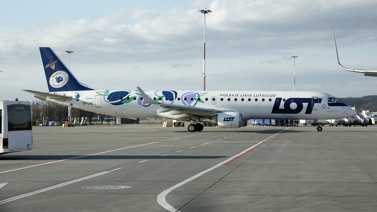 Embraer 190-200LR reg. SP-LNC LOT Polish Airlines Specjalne malowanie od 10.2019 "Śliwka Nałęczowska"